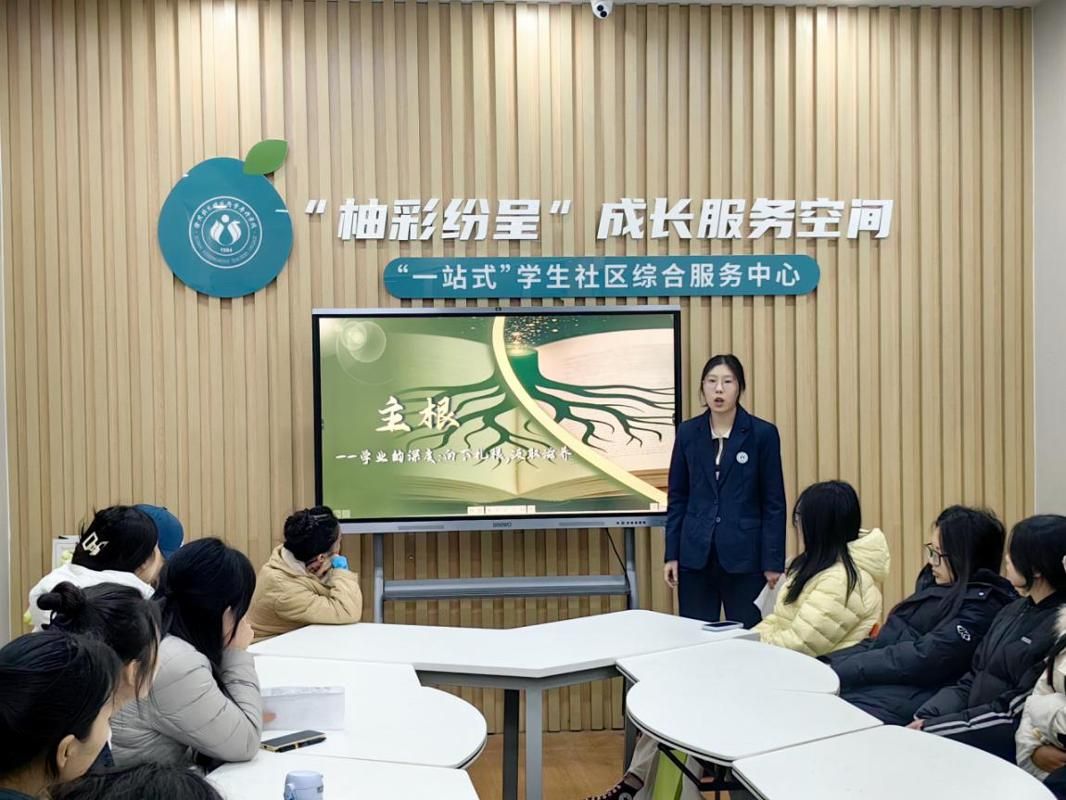 王一涵则以“根系的风景于无声处听惊雷”为主题,分享了自己在大学期间深耕专业、沉淀自我的成长感悟。她认为,大学成长如同植物扎根,看似默默无闻的积累,实则是未来绽放的基础。她结合托育专业学习经历,鼓励同学们要沉下心来钻研专业知识,关注行业发展动态,在日常学习与实践中积累经验、锤炼本领,于无声的坚持中遇见更好的自己。