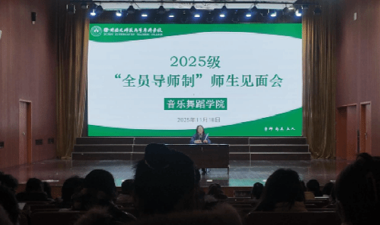 11月20日下午,在致美楼音乐厅,音舞学院召开2025级“全员导师制”师生见面会。学院党总支副书记李艳萍、全体导师、2025级全体新生参加会议,会议由李艳萍主持。