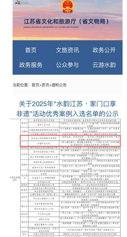 近日,江苏省文化和旅游厅发布关于2025年“水韵江苏・家门口享非遗”活动优秀案例入选名单,经各地推荐申报、专家评审、会议审议等程序,徐州幼儿师范高等专科学校申报的“一曲琴书韵,声声润幼师——徐州幼儿师范高等专科学校‘琴书’非遗融入幼师培育案例”成功入选“非遗在校园”优秀案例。