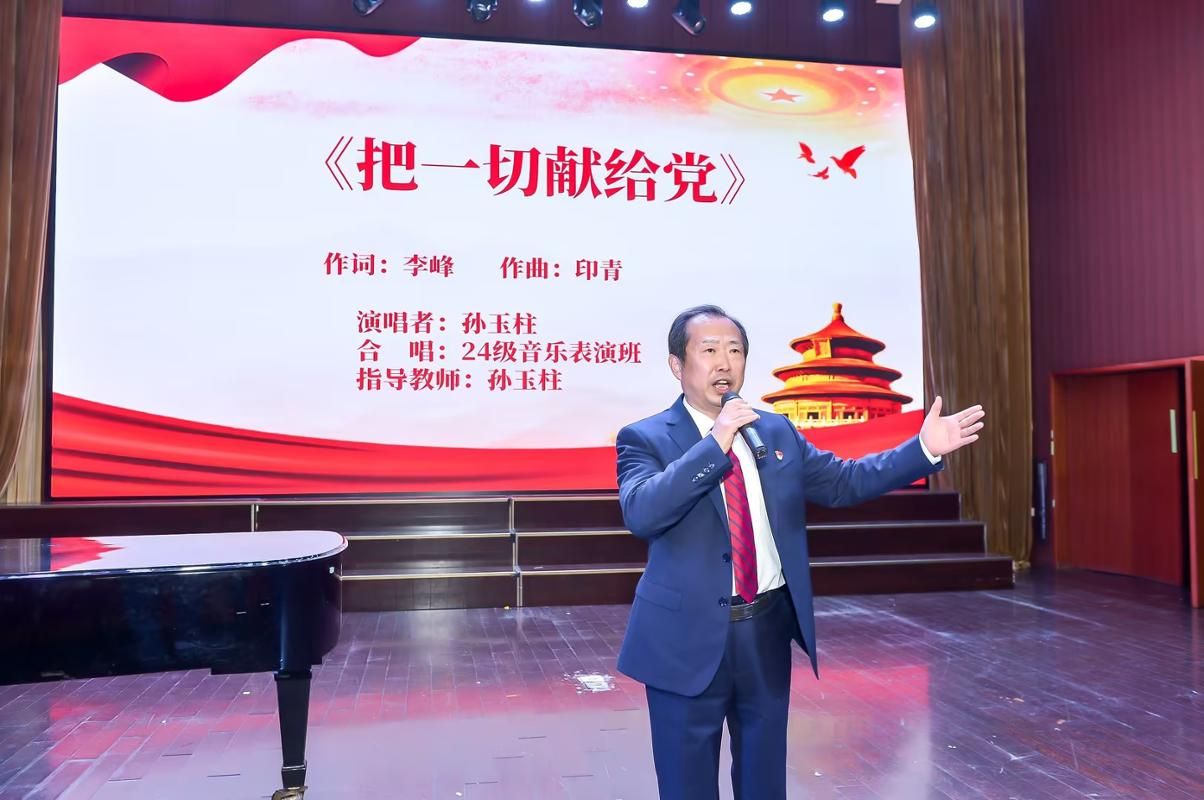 音乐党课作为为党育人、为国育才,助力下一代思想建设工作的重要举措,以创新形式推动红色教育入脑入心。本次音乐党课由音乐舞蹈学院第一党支部书记孙玉柱教授主讲,组织委员吴瑜主持,全体第一支部党员老师以及指导的学生参加。精心设置“烽火映初心·红心向黎明”“山河换新颜·歌声映赤城”“春潮涌神州·奋进谱新篇”“筑梦新时代·扬帆再出发”四个篇章。各篇章精准对应党史四个关键时期,通过10部红色经典歌曲串联起中国共产党人的奋斗征程,将历史叙事与艺术表达深度融合,让师生在沉浸式体验中筑牢信仰之基、凝聚筑梦之力。