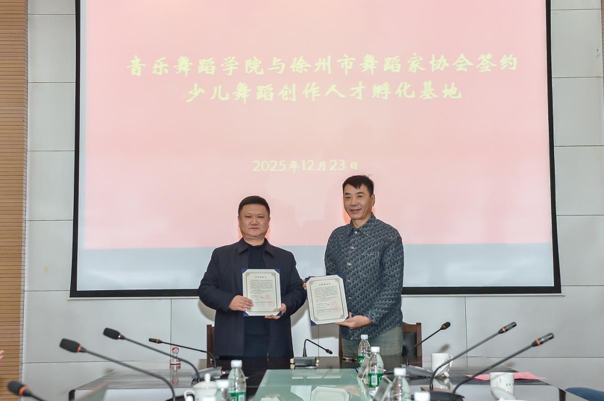 为深化产教融合、服务地方文化发展,2025年12月23日下午,徐州幼儿师范高等专科学校音乐舞蹈学院与徐州市舞蹈家协会合作签约仪式在碧螺校区100A举行。双方旨在通过整合资源,共同促进徐州地区少儿舞蹈创作人才的培养孵化,此次签约标志着学院在开放办学与艺术专业建设方面迈出新步伐。